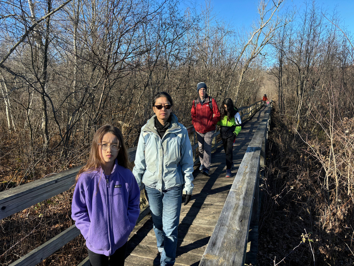 Four of us gathered for a late-morning exploration of the trails along the river. We met a polite hunter in the parking lot; both