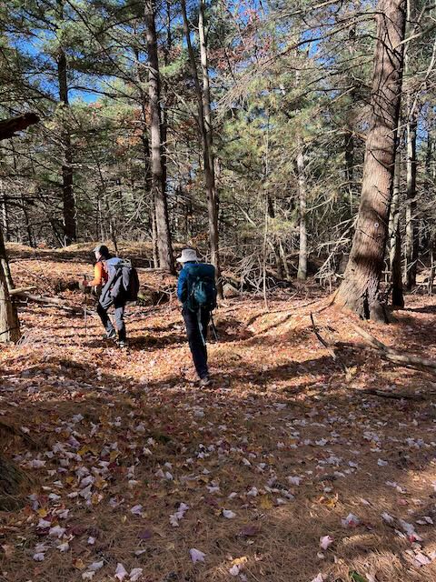 Seven of us walked up the Peavine Swamp trail on a beautiful clear morning. An advance party scouted ahead, clearing a few