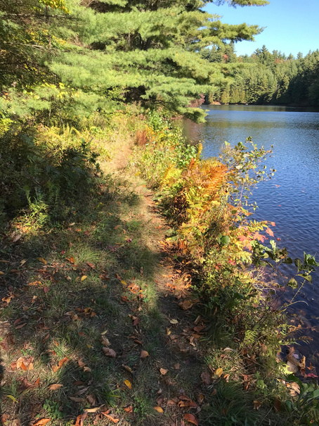Just before the dam, an indistinct trail branches steeply right. It is marked as a Canoe Carry -- but that’s another story.