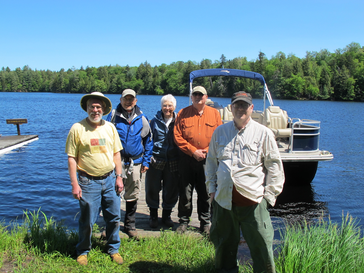 John Barron and I both opted to work on installing new pit privies at Glasby Pond and Cat Mountain Pond. Both ponds are on the Cranberry Lake 50, on opposite sides of Cat Mountain. These two projects started with a boat ride from the Ranger School to Janack’s Landing. The boat rides were provided by volunteers from Wanakena, and were a highlight of the day. The privies were waiting for us at the landing, and we carried them into the ponds, cleared the path from the campsite to the privy locations, dug the pits, and set the privies.