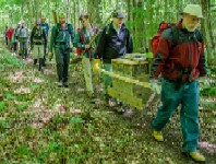 On June 6, Adirondack Mountain Club’s National Trails Day event was held in Wanakena. The Trails Day Event began with a reception Friday evening. Camping at the Cranberry Lake DEC Campground provided by DEC. Saturday morning began bright and early with trail teams heading out on eight projects. Many of the projects focused on improving elements of the popular Cranberry Lake 50 trail system. In particular, two of the projects involved creating trails that remove the majority of the road segments of the trail. Tom Wheeler, Chapter Chair, was on the team working near the Peavine Swamp.